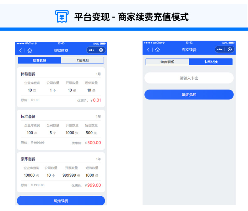 答:给商家开通账号使用,目前市面上每个商家大概300-1000元/一年使用费用,然后可以在短信,企业库接口二次收取增值费用